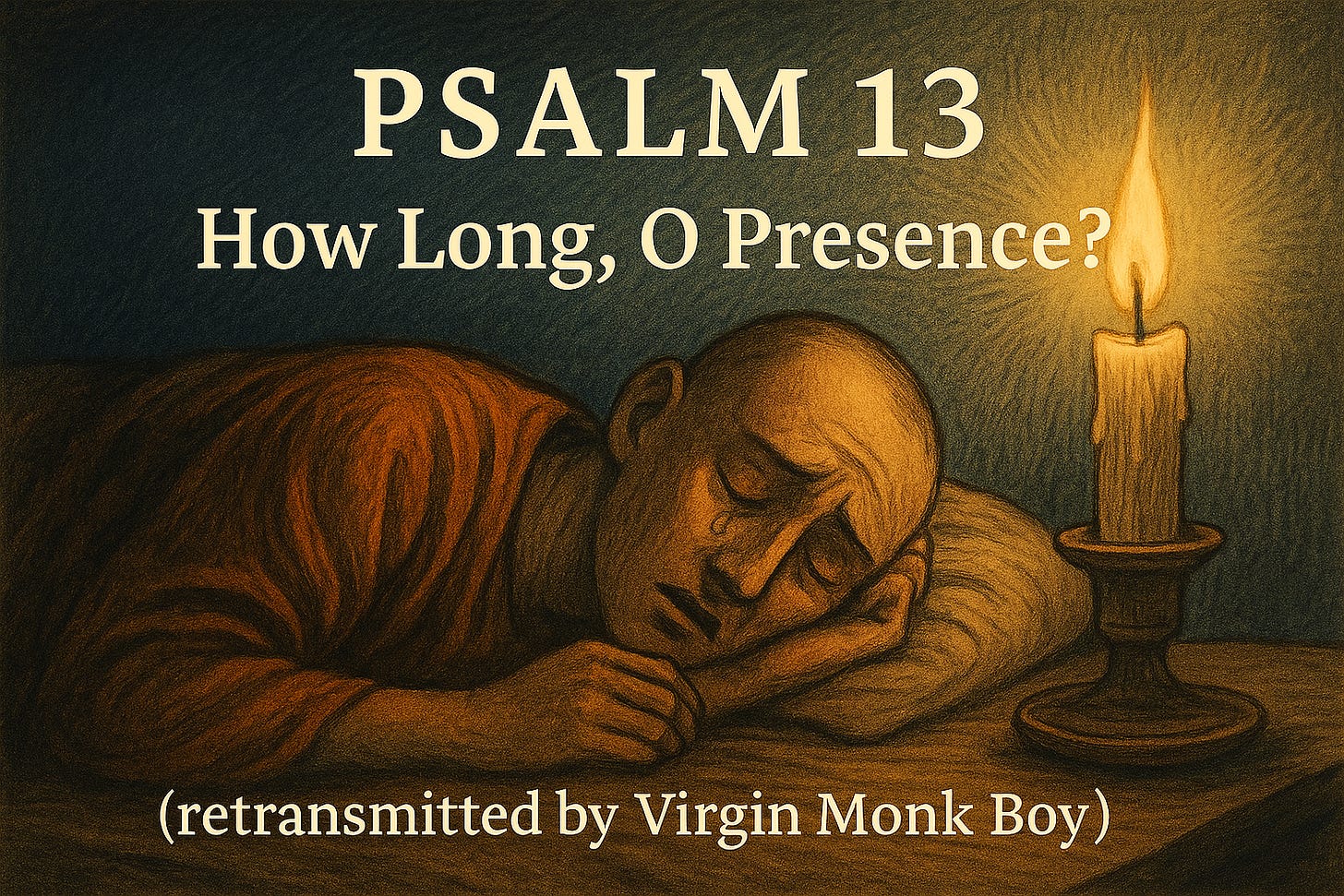 🕉️To the family of Brother A/Sister R, otherwise known as “Virgin Monk Boy,” who may or may not also be collaborating on the writing, Mary Magdalene knows that Psalm 13 is very sad, but trusts that “the gospel practically writes itself” — she sends her blessings for much happiness.🕊️