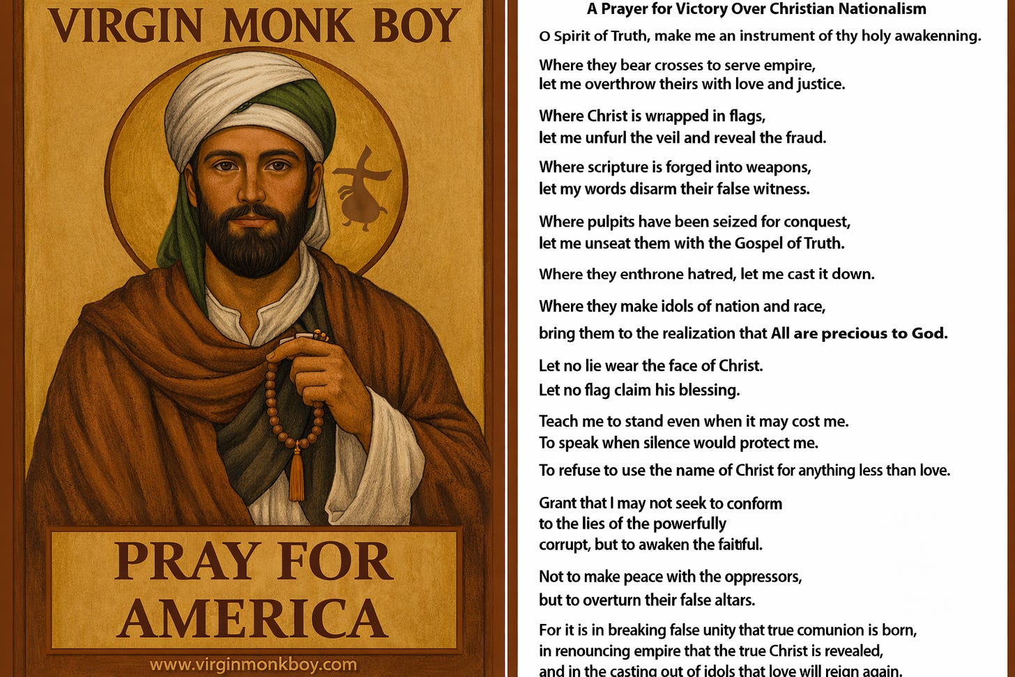 Virgin Monk Boy has always resisted the fusion of religion and coercive power. That resistance didn’t call me to argue about Islam from a distance, but to learn. To listen. To show up. To engage Muslims as neighbors. And eventually, to step into the mosque not as a spectator, but as a participant. In the background, I had also been carrying a long-standing interest in learning ṣalāt itself, after a Sufi teacher recommended the five daily prayers as part of classical Sufi formation.